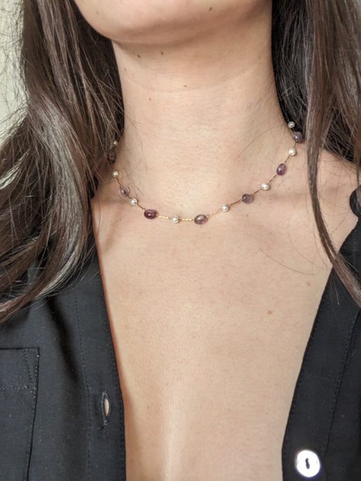 Collier perles nacrées et amétrine - acier inoxydable doré