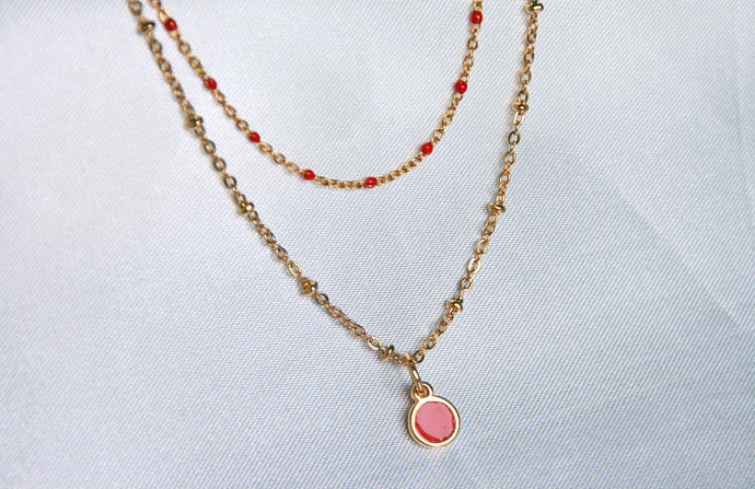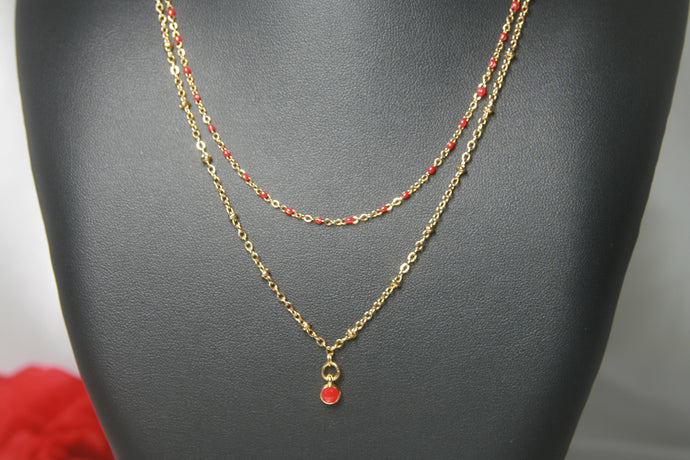 Collier double doré et rouge avec pendentif rouge - acier inoxydable