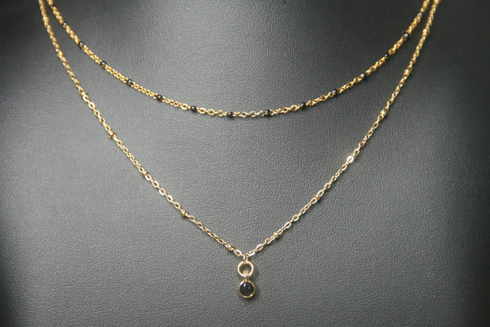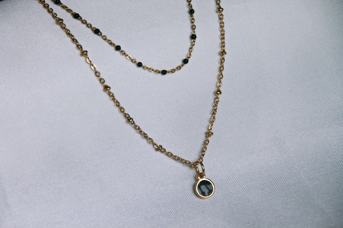 Collier double noir et doré avec pendentif noir - acier inoxydable