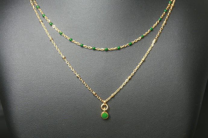Bracelet chaine double, fine et colorée - acier inoxydable doré