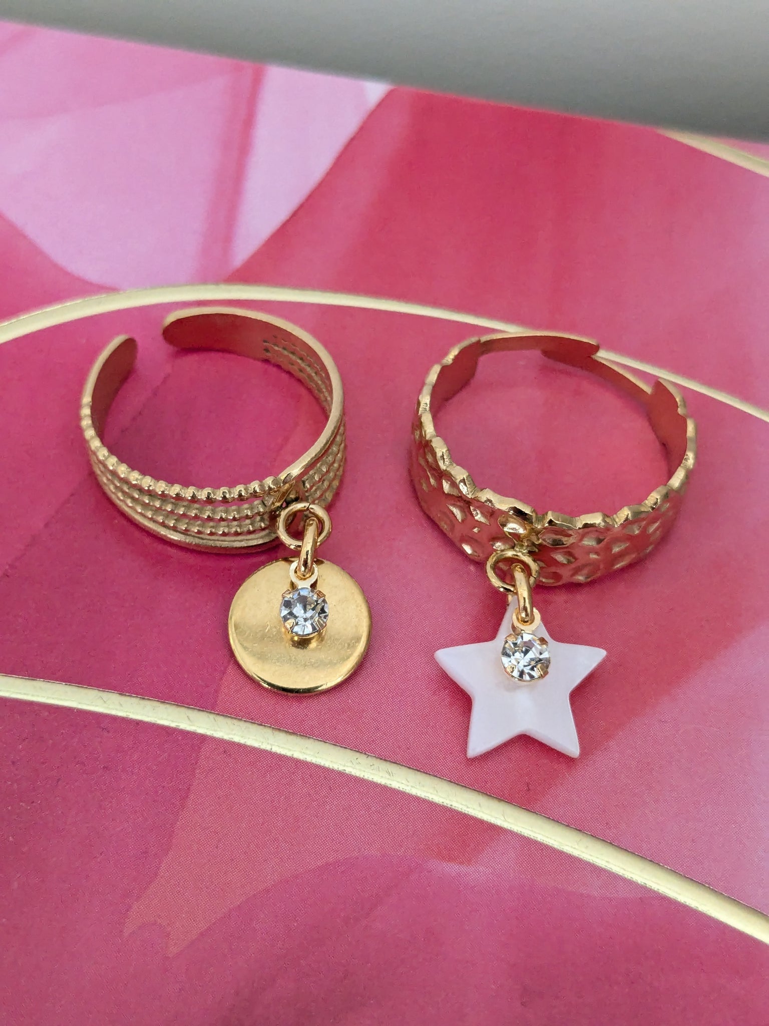 Bague réglable 3 rangs avec pendentifs - acier inoxydable