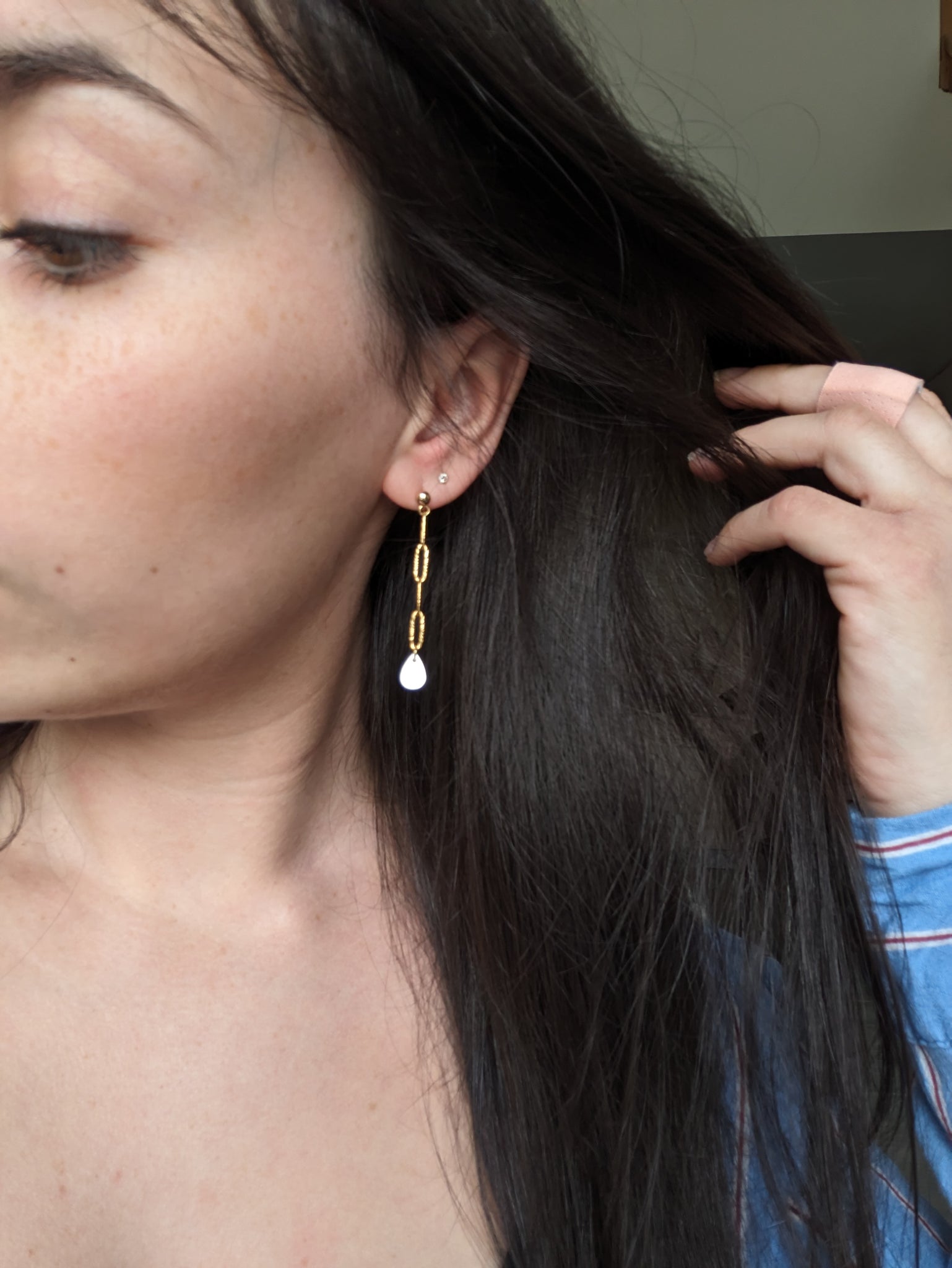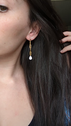 Boucles d'oreilles longues nacrées - acier inoxydable