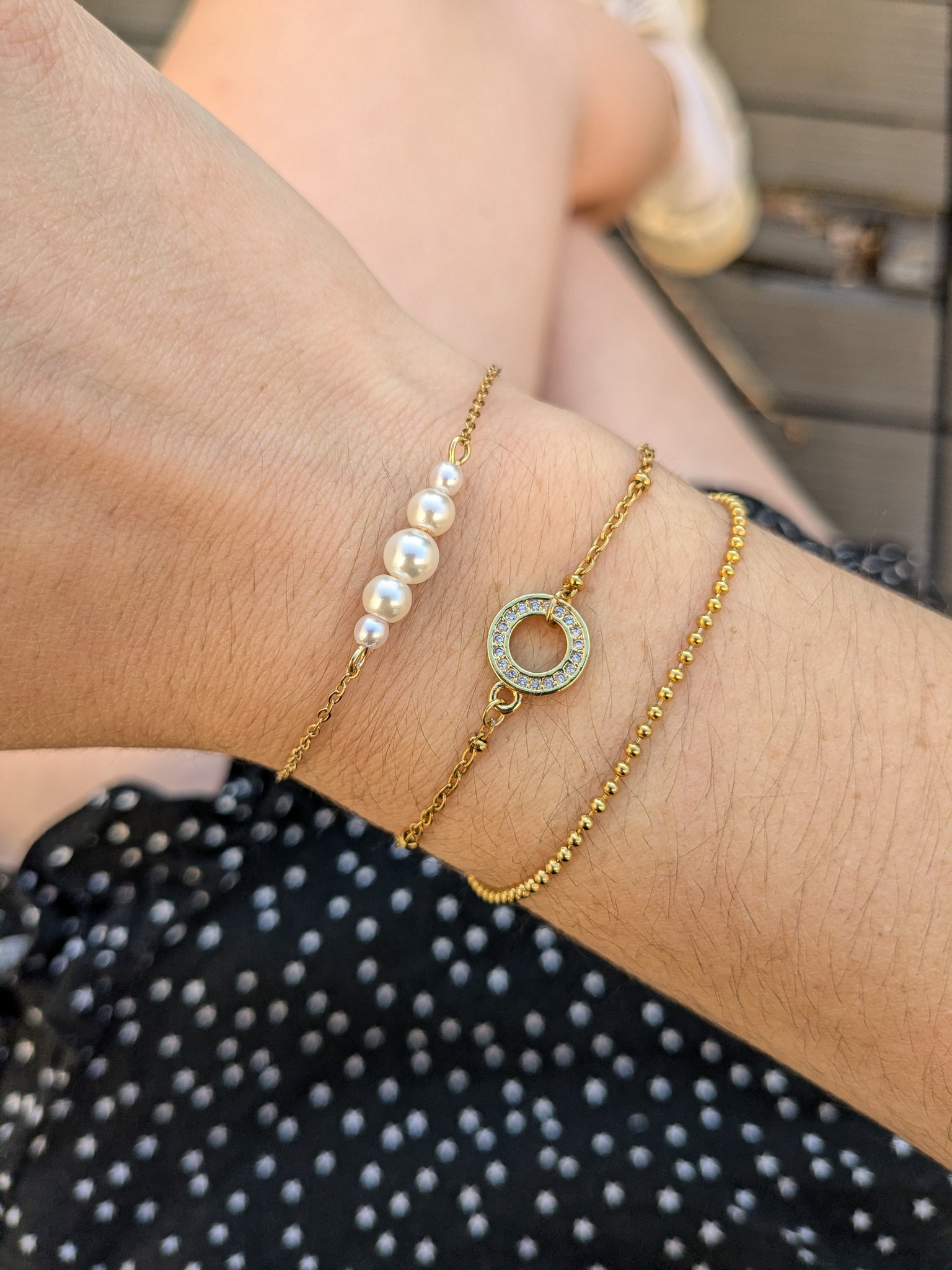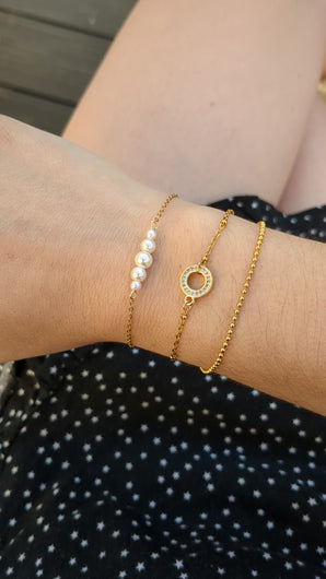 Ce bracelet possède 5 perles nacrées de tailles différentes.
