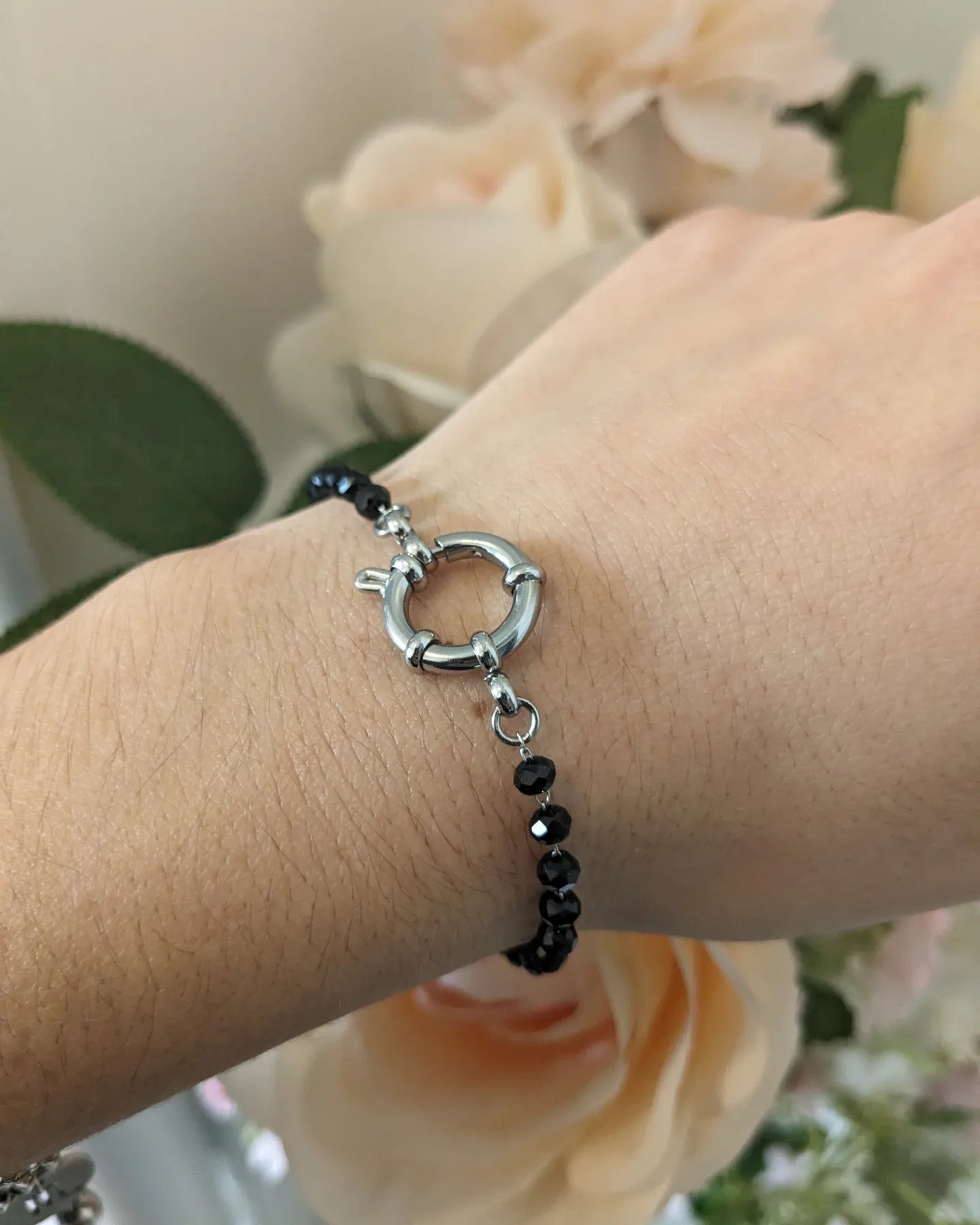 Ce bracelet possède une chaîne de rallonge, vous pouvez l'ouvrir de deux façons de manière classique avec le fermoir ou par l'avant avec la bouée 😊