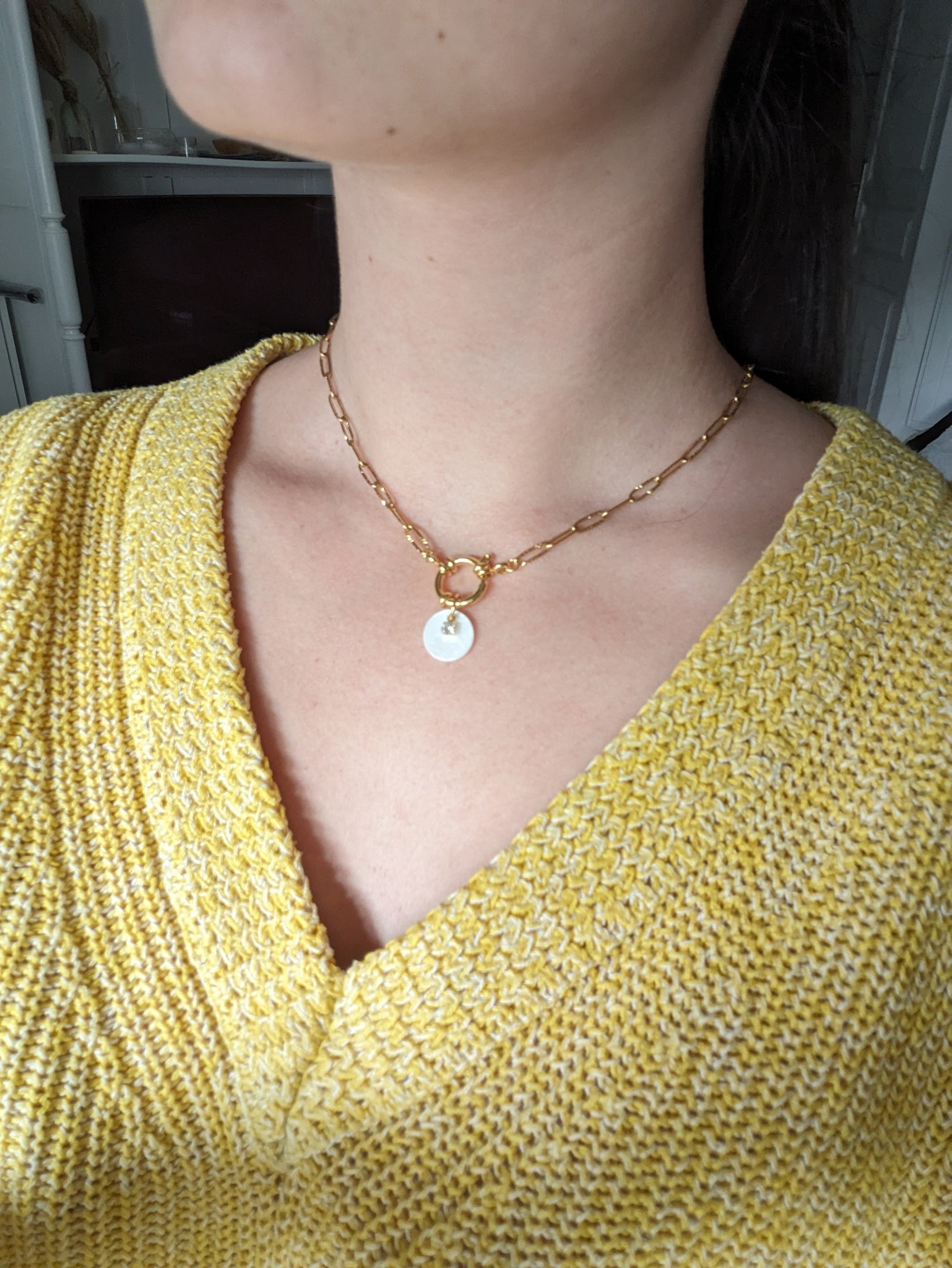 Le collier du bas mesure environ 40cm avec 5 cm de chaine de rallonge.