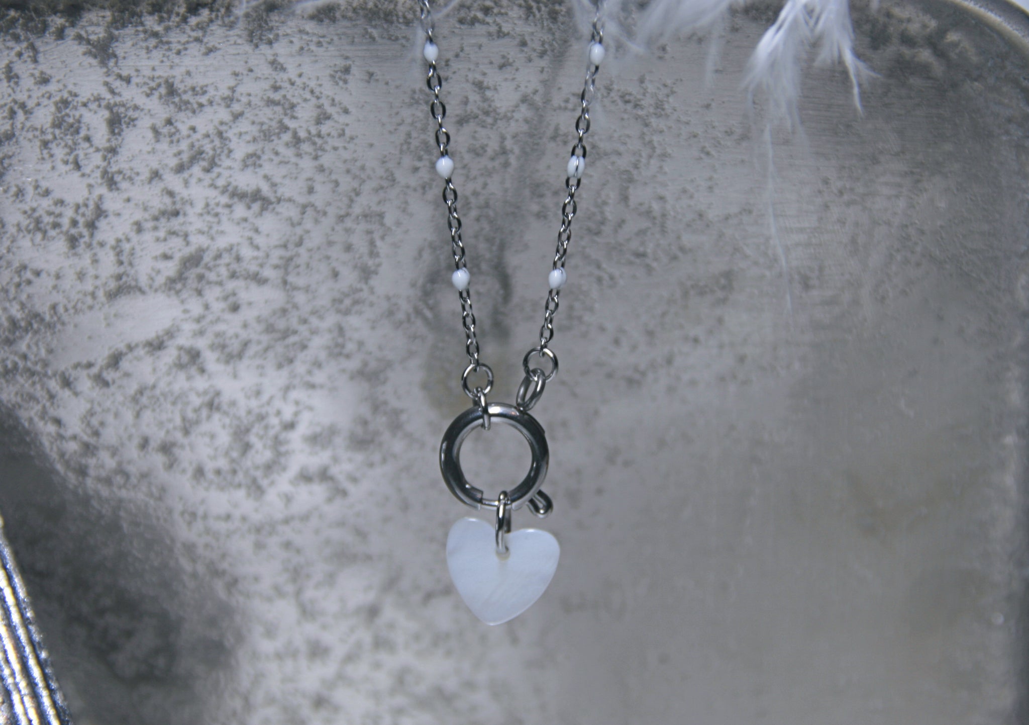 Ce collier mesure 35cm (c'est un ras de cou) et possède une chaine de rallonge de 5cm pour pouvoir adapter la longueur.