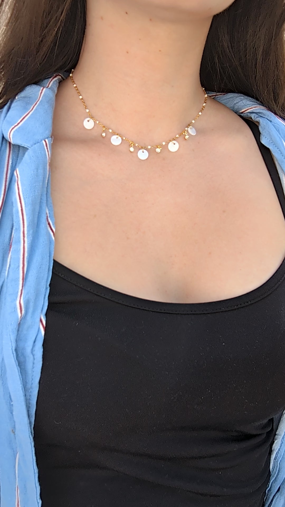 Il mesure 40cm dont 5cm de chaine de rallonge afin de mettre à la longueur souhaitée mais il est préférable de le porter assez ras de cou afin de garder l'arrondi naturel du cou 😊