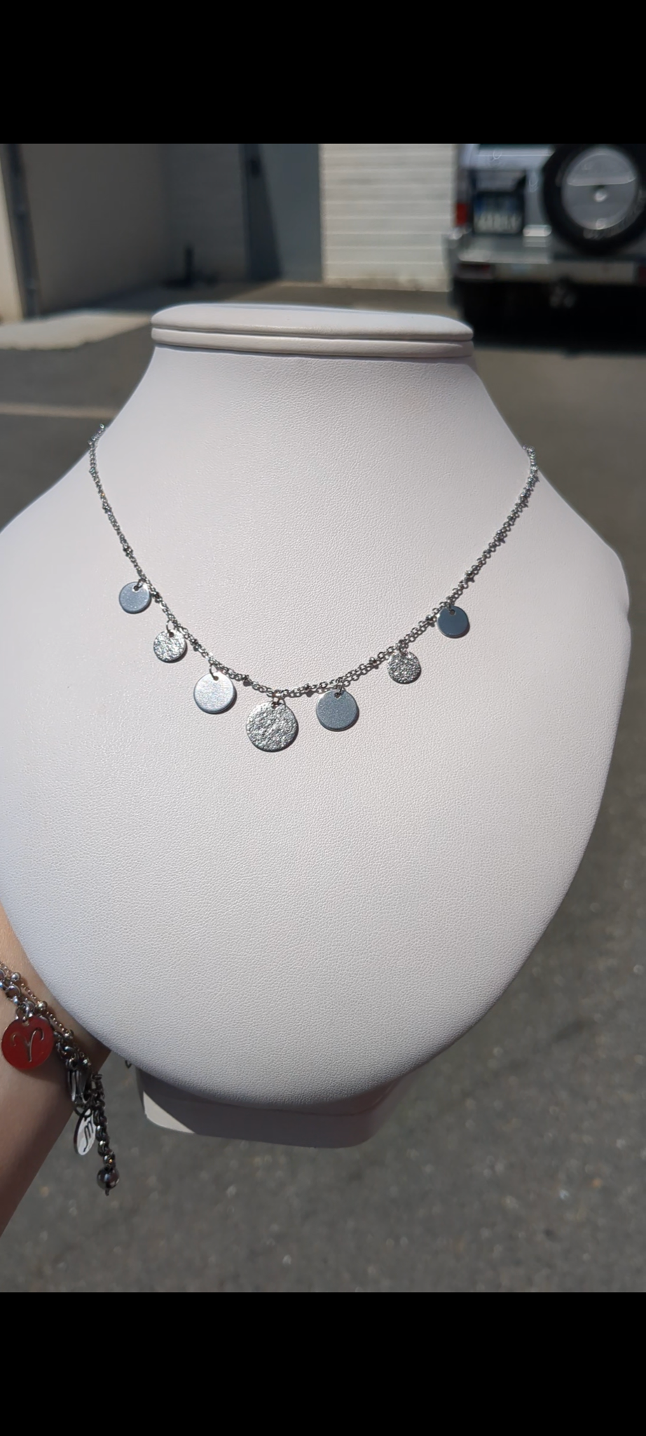 Ce collier est réglable grâce à sa chaîne de rallonge de 5 cm. Il mesure environ 40 cm.