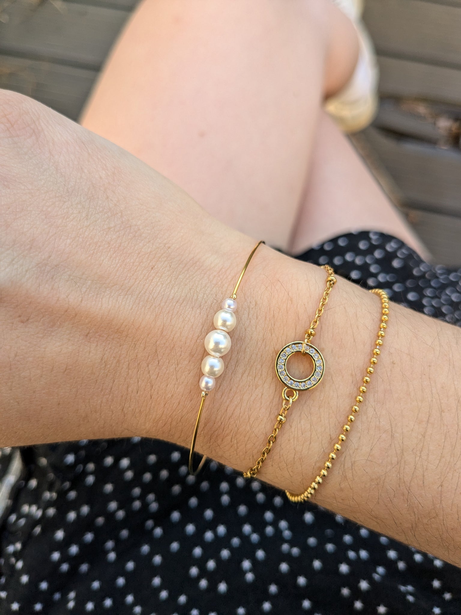 Les perles nacrées sont de tailles différentes et sont des imitations de nacre.